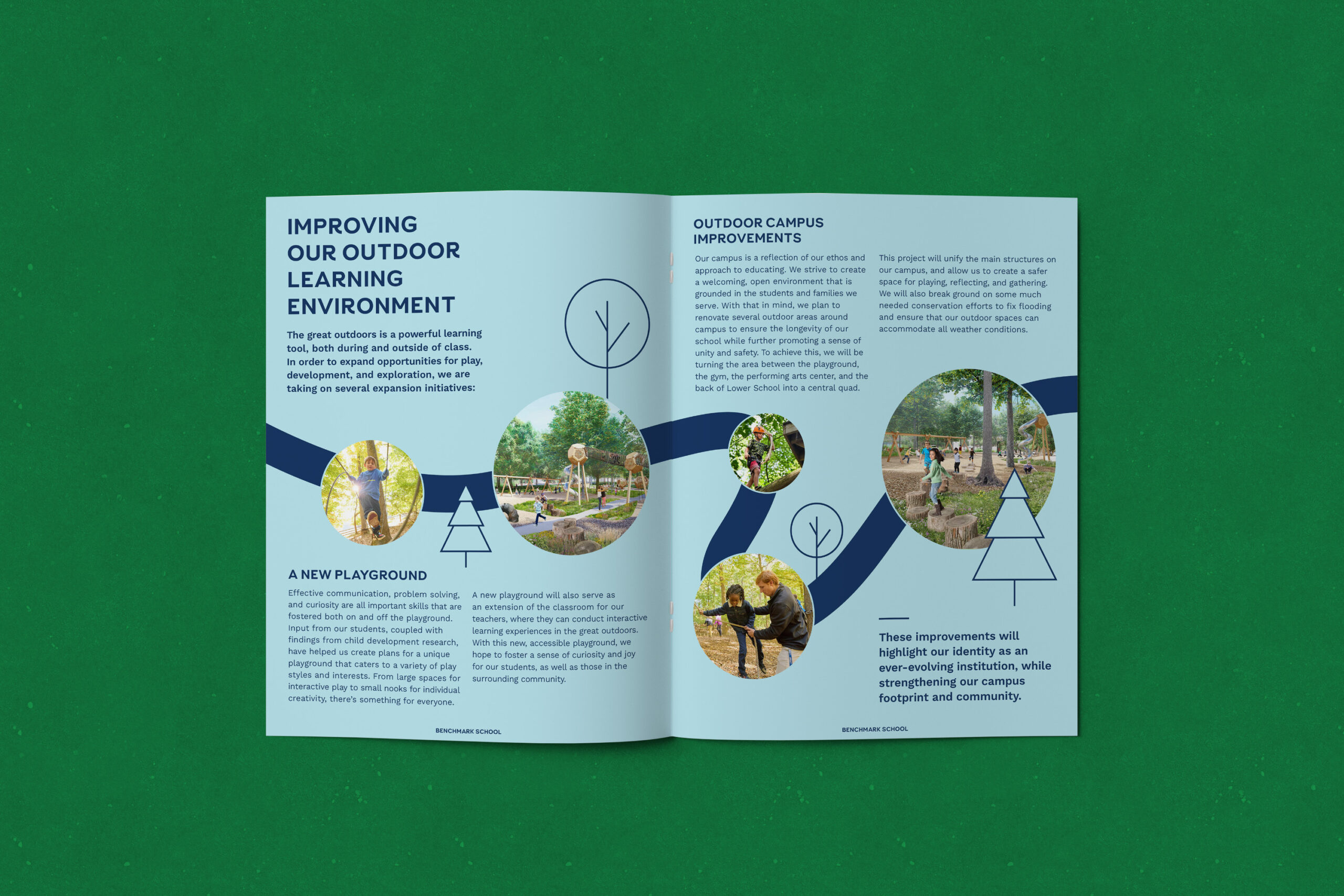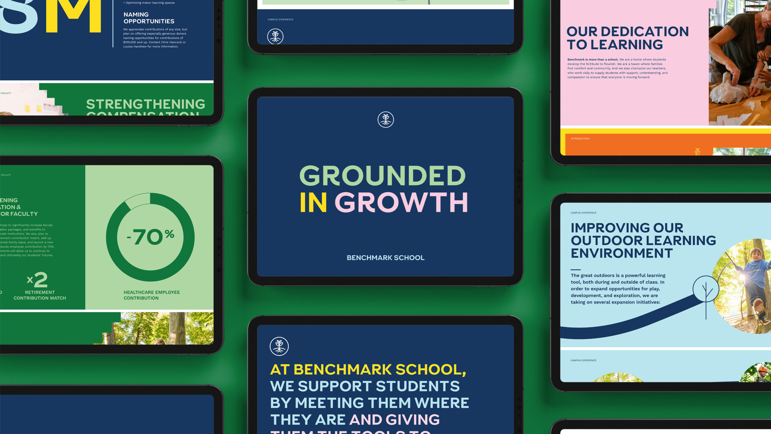 Benchmark School is an independent, co-educational school for grades 1-8, supporting children who have learning differences like dyslexia or dysgraphia, ADD/ADHD, or executive function skills challenges. For over 50 years, Benchmark has certified its place as a leader in transformative education for children. In 2023, the school announced its Grounded for Growth campaign, aiming to raise money and awareness for a suite of redevelopment projects that would tackle everything from a repaved parking lot to an expansive new outdoor learning campus.