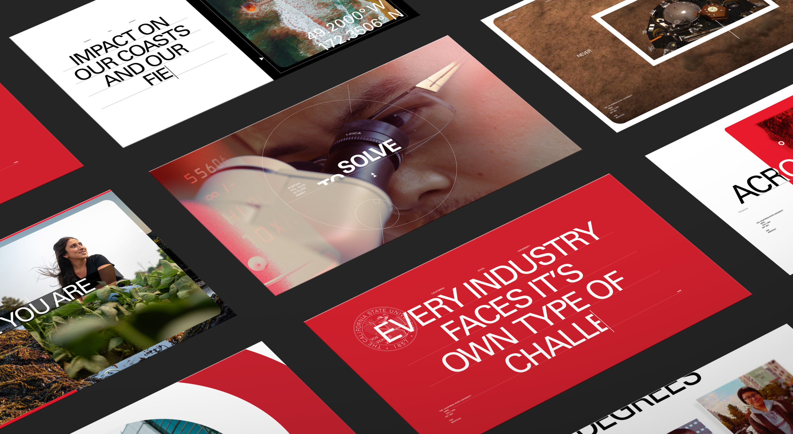 How do you quantify the spirited innovation that occurs on CSU campuses every day? Well, in the same way you quantify the strength of the programs themselves—through sheer scale and impact by the numbers. By pairing kinetic-type animation with immersive photography and videography, we were able to lead viewers through innovation at the CSU, where students receive hands-on experience while immersed in groundbreaking STEM research. Culminating in celebrations of the CSU system’s extraordinary successes, this series of spots tells stories about big and small efforts, and the challenges and opportunities they present. And with over 4 million stakeholders, CSU’s ingenuity and commitment to a better world is unstoppable.