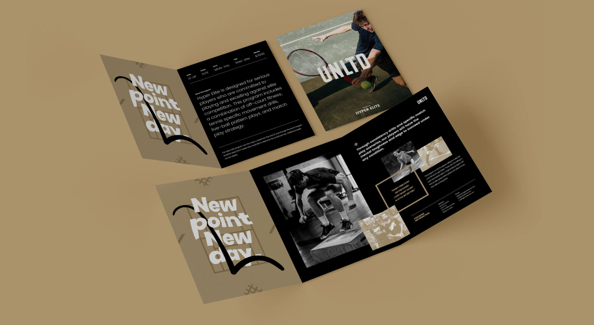 UNLTD’s mission is to inspire athletes. As they expand their efforts to help young athletes tap into their unlimited potential, our efforts expanded as well. What started as a graphics project quickly turned into a brand refresh, as we recognized the opportunity to help elevate UNLTD’s appearance in their physical space. In addition to top-notch indoor and outdoor tennis facilities, UNLTD has evolved their campus to include basketball and CrossFit training areas, as well as dedicated spaces for students to do school work.
