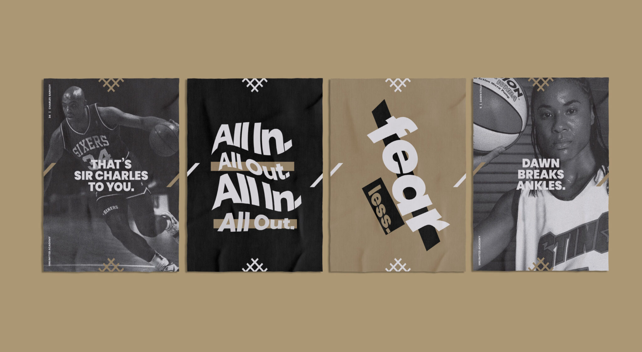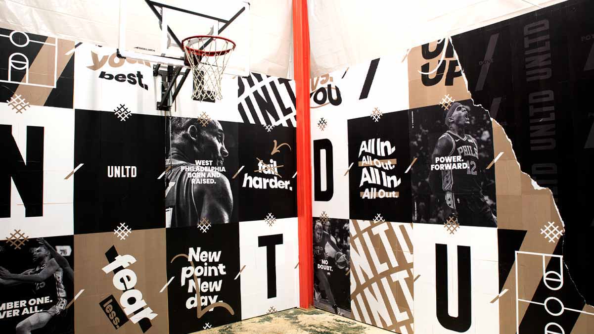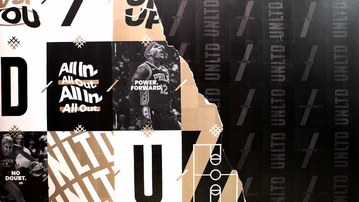 To showcase this brand expansion, we turned up the dials on content creation, developing everything from a speaker series, to social messaging, to apparel. But where the brand refresh really came to life was in our physical graphics applications. From their training gyms, to basketball courts, to locker rooms and store, we adorned UNLTD’s walls with inspired design. Big bold graphic moves brought spaces to life. Athletes, who themselves have been unlimited in their respective sports, took the stage in larger-than-life fashion. And inspirational quotes were posted to inspire athletes all the way from training to competition.